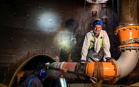 Eindrücke aus der Unterwelt unter St. Pauli: Nachdem das Sanierungsprogramm “Alte Riesen” mit den Arbeiten im Kuhmühlenstammsiel gestartet ist, folgen nun die Arbeiten in der Sielzusammenführung am Pumpwerk Hafenstraße.