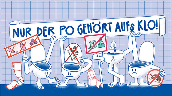 Damit wir unsere tägliche Arbeit ohne Probleme erledigen können und gemeinsam unsere Umwelt schützen, können auch Sie etwas tun: Machen Sie Ihr WC nicht zum Mülleimer! Nur Urin, Fäkalien und Klopapier gehören in die Toilette.