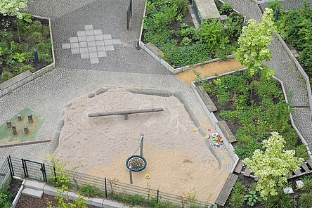 Im Idealfall soll der Regen dort versickern und verdunsten, wo er gefallen ist. Falls das nicht kurzfristig möglich ist, wird Regenwasser zwischengespeichert. Die Stadt der Zukunft soll das Wasser aufnehmen und abgeben wie ein Schwamm. Dabei können Straßenbäume, entsiegelte Flächen oder Gründächer ebenso helfen wie Versickerungsmulden, Parkanlagen oder multifunktionale Räume wie das Hein-Klink-Stadion, das im Starkregenfall Platz für Wassermassen bietet.