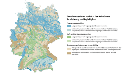 Wie groß der Schatz unter Hamburg und der Region ist, lässt sich erst mit einem Blick auf eine Typologie der Grundwasserleiter in Deutschland so richtig begreifen: Die großen Porengrundwasserleiter, die auf der hydrogeologischen Karte von Europa blau eingezeichnet sind, ziehen sich wie ein blaues Band durch Norddeutschland in den Osten. Die Farbe ist dabei bedeutsam: Im Hamburger Raum gibt es ausgedehnte und besonders ergiebige Grundwasservorkommen.