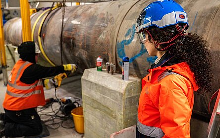 Normalerweise rauscht hier das Abwasser von 550.000 Hamburgerinnen und Hamburgern unter der Elbe zum Klärwerk. Jetzt wurde die Druckrohrleitung saniert – und mit einem Wärmetauscher ausgestattet.