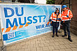 Zweite Bürgermeisterin und Umweltsenatorin Hamburgs Katharina Fegebank und HAMBURG WASSER Geschäftsführer Dr. Michael Beckereit vor dem Banner der neuen HAMBURG WASSER-Baustellen-Kampagne. (Foto: Thomas Ebert/ HAMBURG WASSER)
