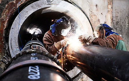 Um das Kuhmühlenstammsiel für künftige Generationen zukunftsfest zu machen, wird es jetzt saniert. Dafür nutzen wir das sogenannte Rohrlining-Verfahren: Neue Rohre werden über eine Startgrube in das bestehende Siel eingezogen und dort zu einer neuen Leitung verbunden. Das verkürzt die Bauzeit und schont den Verkehr.